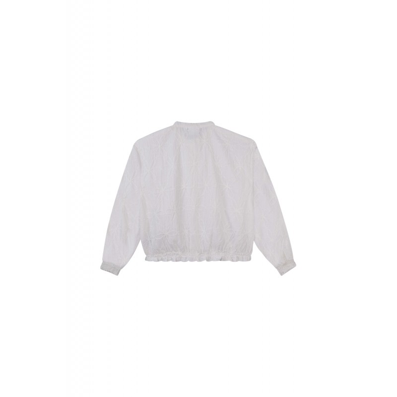 Blouson aviateur plissé écru foncé avec zip. Composition : 50 % viscose, 50 % polyester.
