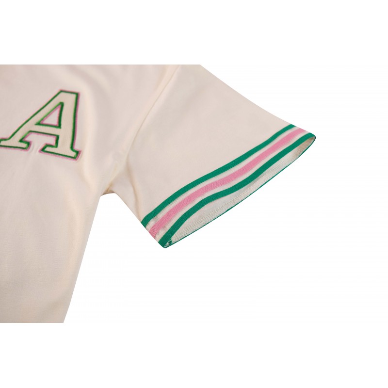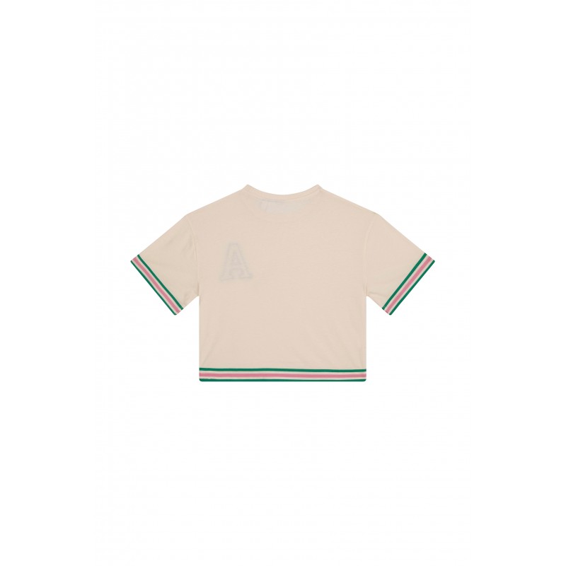 Haut court côtelé écru avec finition babylock. Composition : 50 % viscose, 50 % polyester.