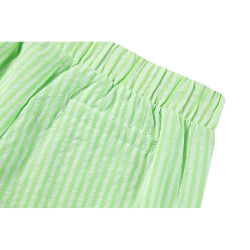 Pantalon avec ceinture côtelée rayée en tricot nylon. Composition : 50 % viscose, 50 % polyester.