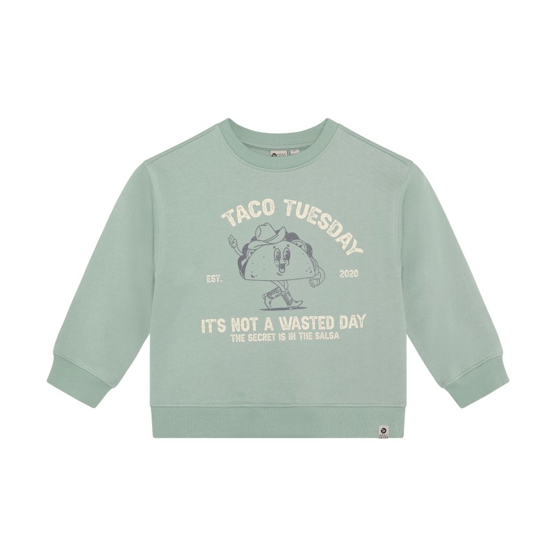 Sweat-shirt Daily7Kids. Coupe oversize. Couleur unie avec imprimé sur le devant. Bords côtelés et col rond. Fabriqué en coton biologique certifié. Certifié GOTS - CERES-0366