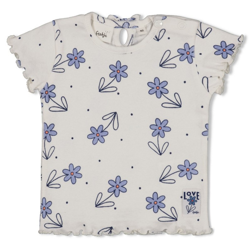FEETJE : T-shirt côtelé AOP - Denim d'été Offwhit