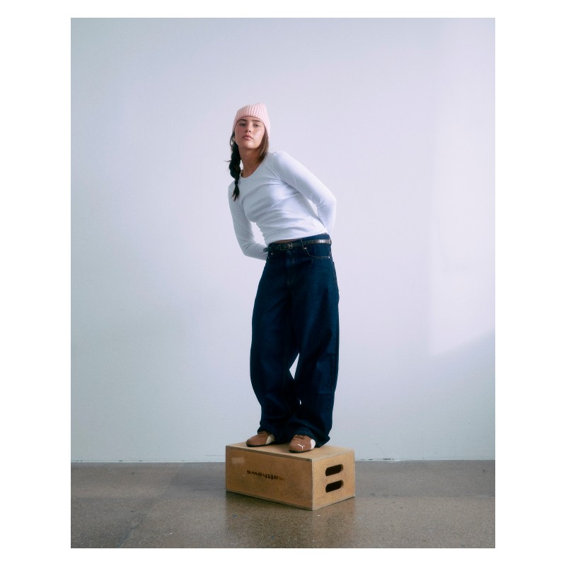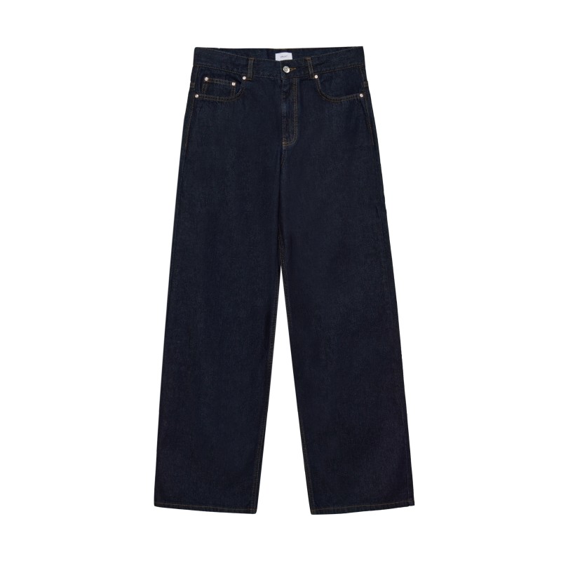 Jean Tenerife taille basse bleu brut avec fermeture éclair et cinq poches. Composition : 100 % coton.
