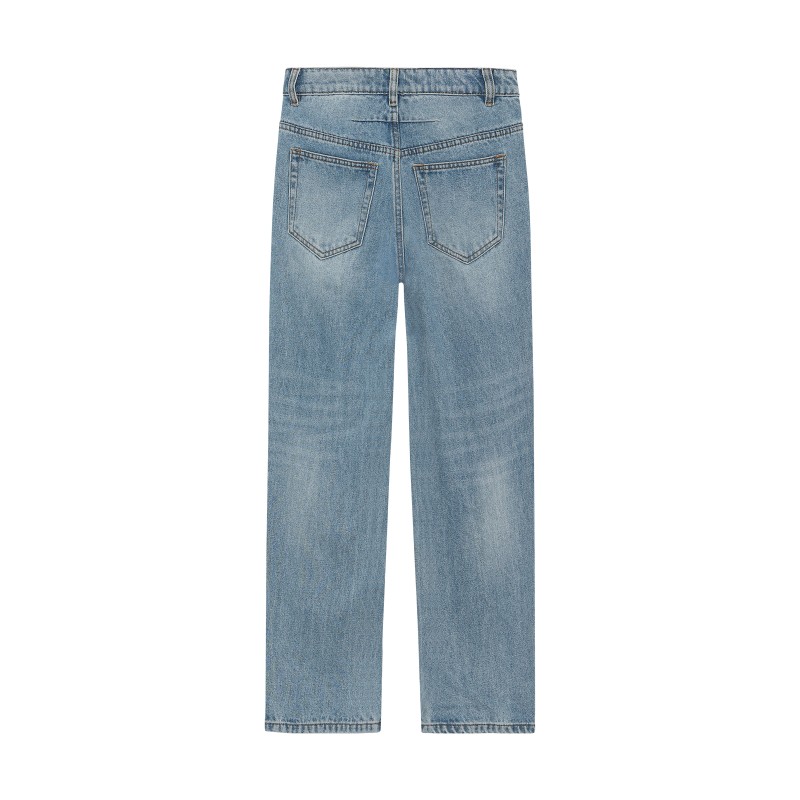 Jean HAMON délavé clair avec cinq poches, une braguette zippée et une coupe classique. 100 % coton