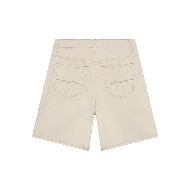 Short Hamon blanc brut à cinq poches et fermeture éclair. Coupe ample. Composition : 100 % coton.