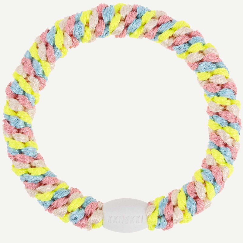 Considérés comme les meilleurs élastiques à cheveux au monde, ils peuvent également être portés en bracelet. La collection Kknekki a tout pour plaire : couleurs vives, pastels, paillettes ou finitions mates ; il y en a pour tous les goûts ! La collection s'enrichit sans cesse de tissus tissés et velours.Les couleurs et les tissus restent beaux, même dans l'eau (salée), vous n'avez donc pas à vous soucier de la qualité !Les avantages de Kknekki :* Moins de dommages capillaires* Peut être porté en bracelet* Forte adhérence* Résistant à l'eau* Ne s'étire pas* Couleurs et tissus variés* Technique unique de tissage et de collage* Reprise de forme* Convient à tous les types de cheveux