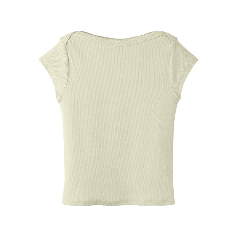 Apportez de la couleur et de la fraîcheur à votre garde-robe avec des styles printaniers et estivaux tendance et préparez-vous à des journées plus longues et plus légères.La maille côtelée présente un motif vertical à rayures et une bonne élasticité pour une sensation de confort et un look intemporel. - Type d'article : Top - Col : Col bateau - Manches : Manches courtes - Coupe : Slim Fit Composé : 95% Coton - Bio, 5% Élasthanne