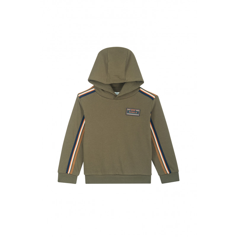 Sweat à capuche kaki avec badge en caoutchouc sur la poitrine et bande spéciale sur les épaules et les manches.Composition : 100 % coton
