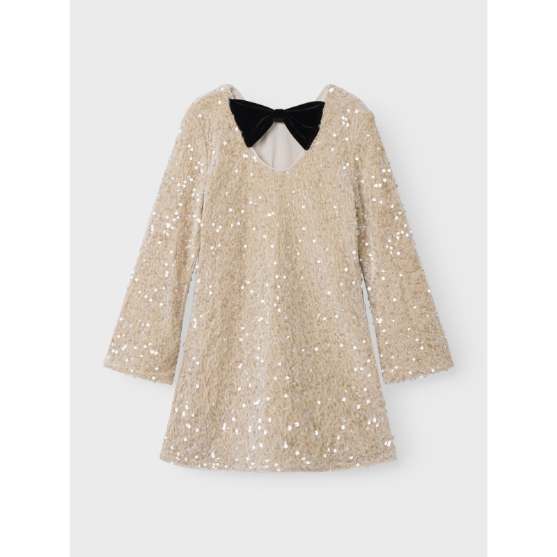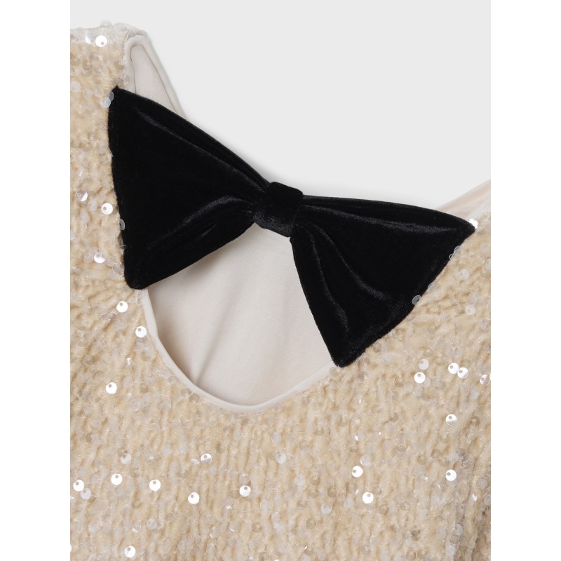 Préparez votre enfant pour les fêtes et les occasions spéciales tout au long de l'année avec des pièces de fête glamour.Le tissu présente un motif de point de croix distinctif et une surface texturée, créant un look élégant et classique.- Type de produit : Robe- Col : Col rond- Manches : Manches longues- Longueur/Taille : Courte- Doublure : Doublure en polyester pour un aspect opaque- Détails : Nœud, Sequins- Coupe : Coupe standardComposition : 100 % polyester - Recyclé