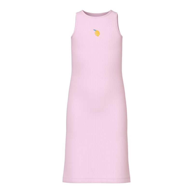 Composez la tenue parfaite pour votre enfant avec des styles quotidiens de qualité et créez un look confortable et tendance. - Type d'article : Robe - Col : Col rond - Manches : Sans manches - Détails : Détail brodé - Coupe : Slim Fit Composé : 95% Coton - Bio, 5% Élasthanne