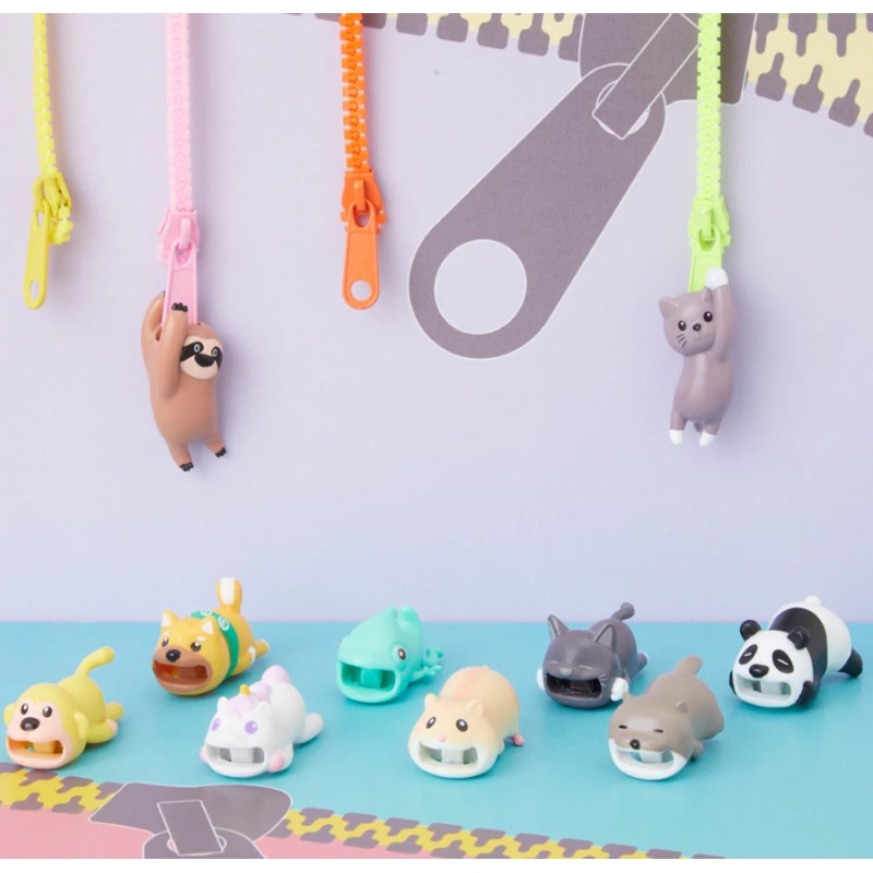 Les créateurs de Cable Bites® vous proposent la dernière tendance à croquer. Les Zipperbites™ sont des animaux amusants qui s'attachent aux tirettes de fermeture éclair,