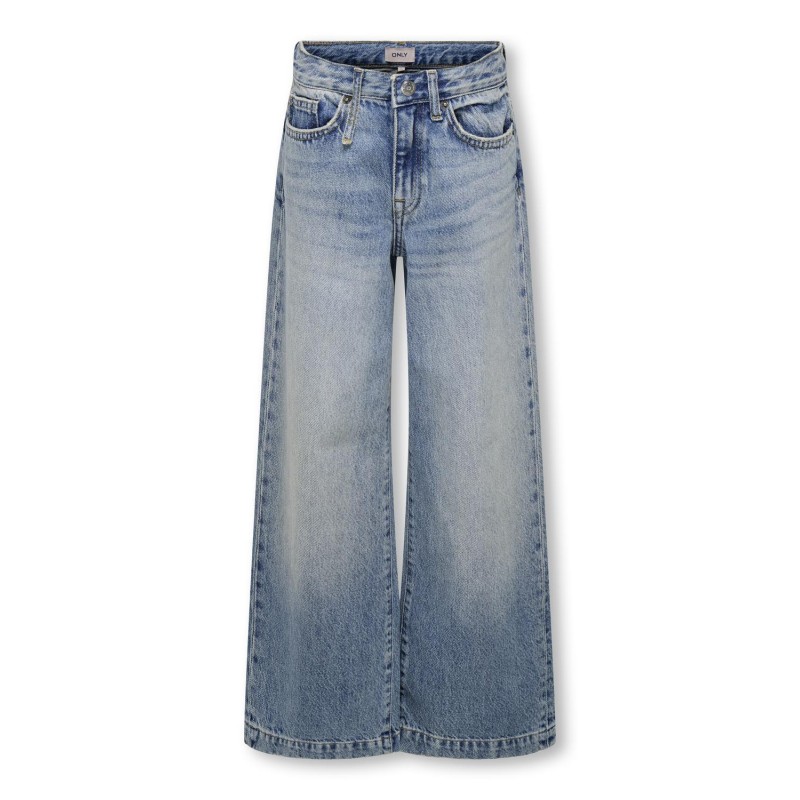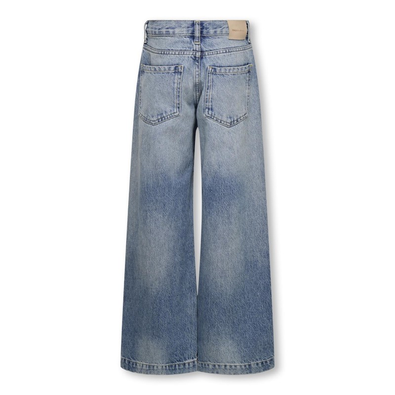 Ontdek je nieuwe favoriete item voor zowel werk als vrije tijd met een coole jeans met de perfecte fit en kleur.KIDS ONLY is een fashionmerk voor kids die weten wat ze willen. Ontdek een wereld van denim, streetwear en andere fashion favourites.Junior items hebben een coole en moderne look en zijn ontworpen voor 8- tot 16-jarigen.. - Producttype : Wide-leg jeans - Sluiting : Gulp met knopen - Zakken : Achterzakken, Muntzakje, Voorzakken - Taille : High waist - Details : Riemlussen - Lichaamstype : Junior - Pasvorm : Deze wijde pijpen zijn ontworpen met comfort in gedachten, met veel ruimte van heup tot enkel Samenstelling : 45% Katoen, 30% Biologisch katoen, 25% Gerecycled katoen