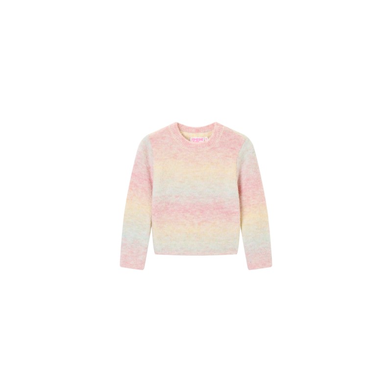 Pull en maille dégradé orange et rose.Composition : 47 % laine mérinos, 29 % nylon, 15 % laine, 8 % laine alpaga, 1 % élasthanne