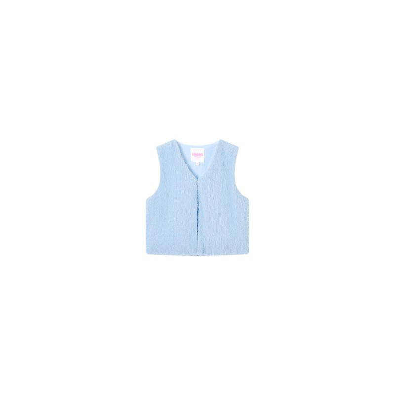 Composition : 100% coton peigné Description : Gilet en maille ajourée avec Lurex.