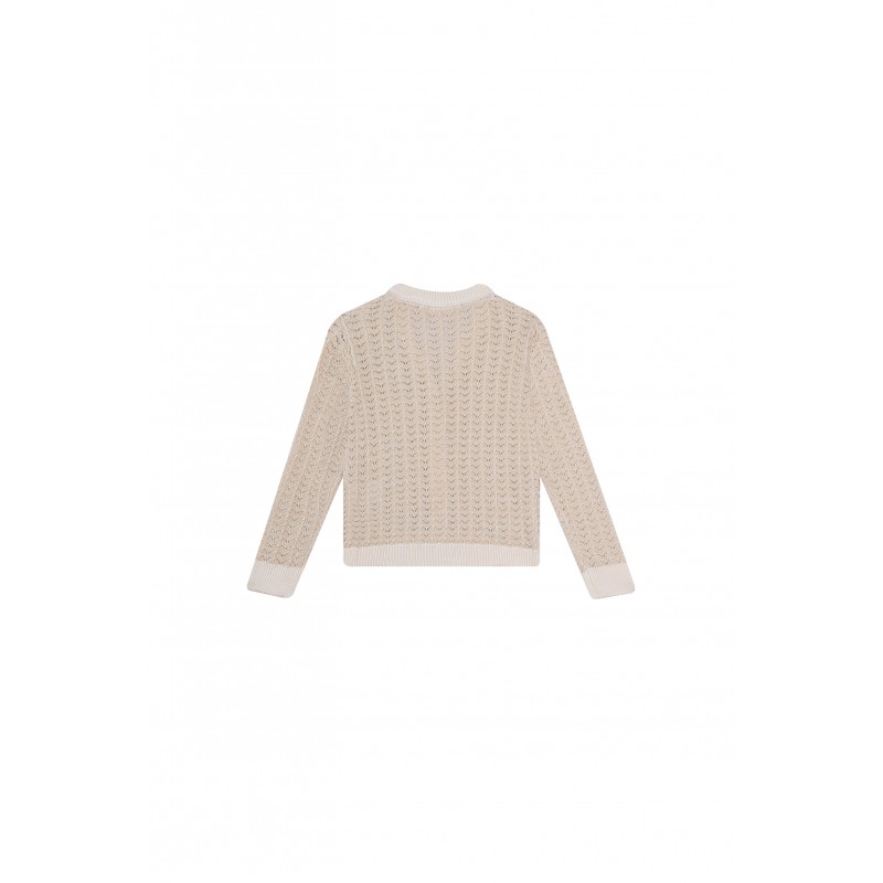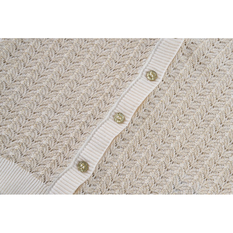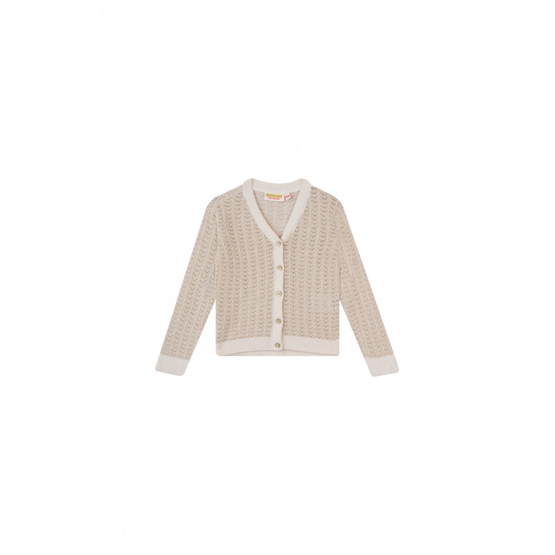Composition : 100% coton peigné Description : Gilet en maille ajourée avec Lurex.