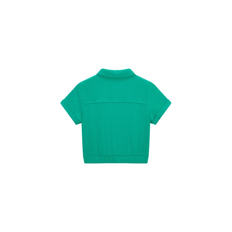 Composition : 79% CO, 19% POL, 2% EA Description : Veste bleu denim avec écusson brodé au dos, poches poitrine et boutons.