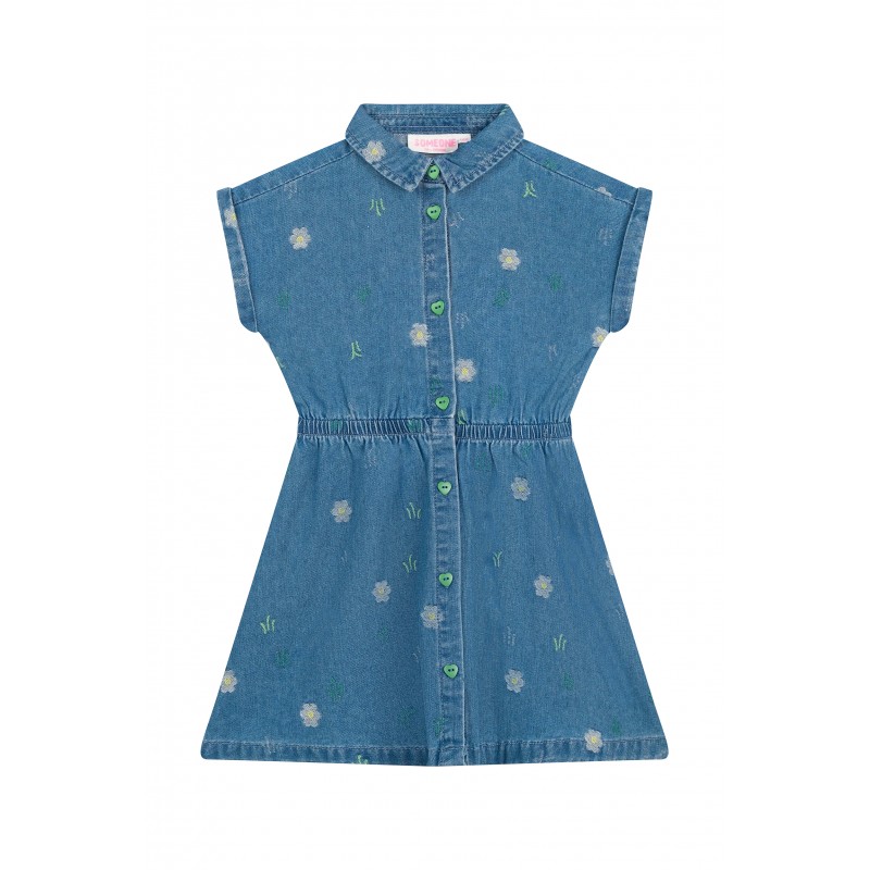SOMEONE : robe à manches courtes bleu denim