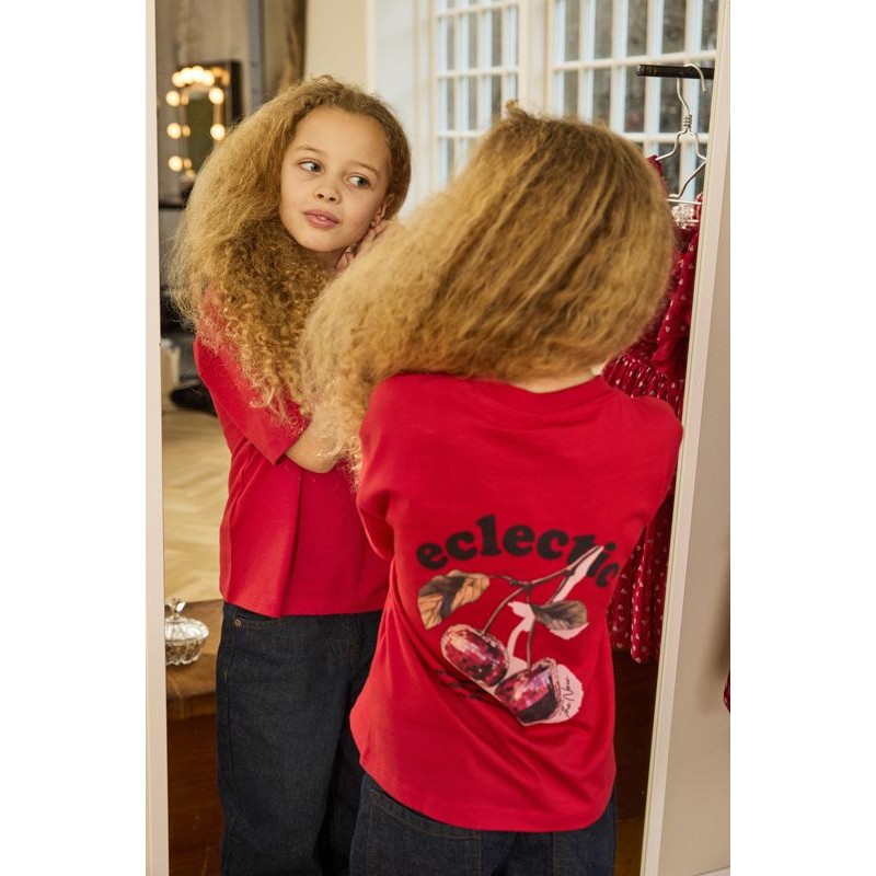 Donnez une touche dynamique et ludique à votre garde-robe avec ce t-shirt oversize THE NEW. Il arbore une magnifique cerise bordeaux sur la poitrine, tandis que le dos arbore un imprimé cerise agrandi, accompagné des inscriptions inspirantes « eclectic » et « even cherries -- go full disco mode -- dance like -- no one's watching ». Ce t-shirt est disponible en deux coloris – un rouge vif et un beige neutre – pour une allure fun et élégante, quel que soit votre choix. Sa coupe oversize allie confort et modernité, tandis que son imprimé accrocheur apporte une touche personnelle et tendance.