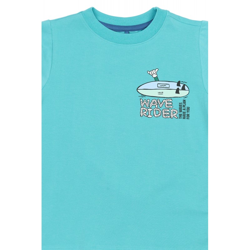 Ce t-shirt à manches courtes pour garçon est composé à 95 % de coton biologique et à 5 % d'élasthanne pour une douceur et une légère élasticité. Il présente une encolure ronde classique, une coupe standard et un ourlet droit, idéal au quotidien. Un petit imprimé représentant une planche de surf avec l'inscription « Wave Rider » orne la poitrine. Sa couleur bleu turquoise unie s'accorde facilement avec des tenues décontractées. Parfait pour les journées chaudes, il se porte aussi très bien sous un sweat-shirt ou une veste. Facile à associer avec un short, un jean ou un jogging.- T-shirt à manches courtes coupe standard et encolure ronde- Petit imprimé sur la poitrine représentant une planche de surf et l'inscription « Wave Rider »- Tissu extensible pour une liberté de mouvement optimale- Contient 95 % de coton biologique certifié GOTS et 5 % d'élasthanne. Luxkids est certifié GOTS par Control Union (n° 842535). Seuls les produits portant le label et la mention GOTS sont certifiés. Composition : 95 % coton biologique certifié GOTS, 5 % élasthanne