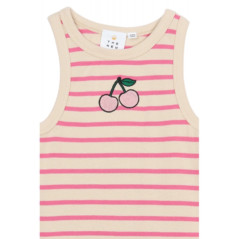 La robe TNShannon S_L de THE NEW est une robe sans manches pour filles, confectionnée en coton 100 % biologique. Son encolure ronde et sa coupe droite la rendent facile à porter au quotidien. La robe présente un motif rayé et un petit motif de fruits brodé sur la poitrine. Les finitions soignées à l'encolure et aux emmanchures lui confèrent une allure élégante. Elle se porte aussi bien seule par temps chaud qu'avec un cardigan ou un legging.100 % coton biologiqueSans manches, encolure ronde et coupe droiteMotif rayé avec petite broderie sur la poitrineContient du coton 100 % biologique certifié GOTS. Luxkids est certifié GOTS par Control Union (n° 842535). Seuls les produits portant le label GOTS sont certifiés. Composition : 100 % coton biologique certifié GOTS
