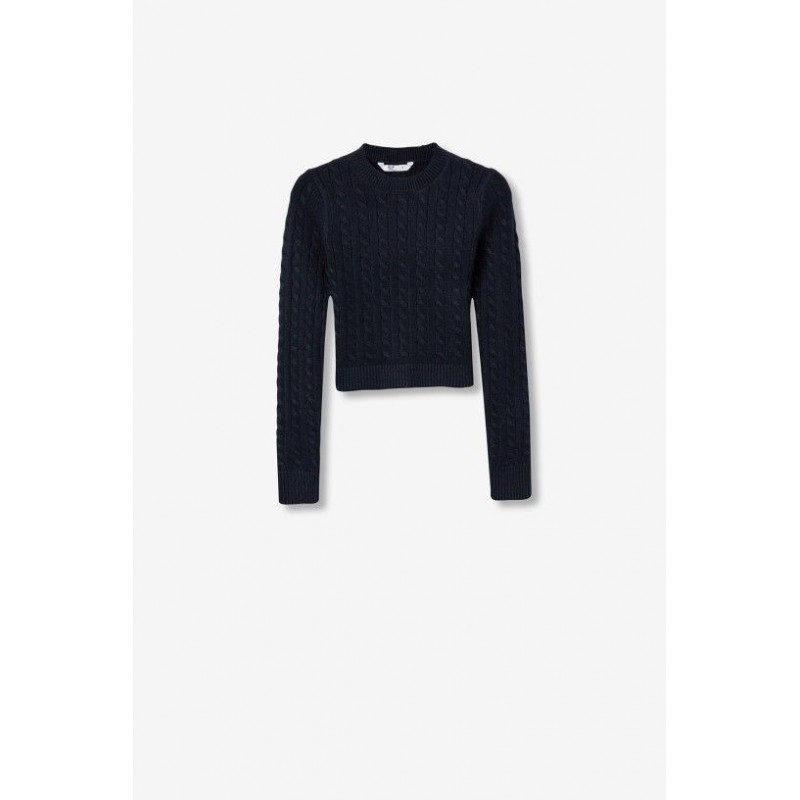 Pull ajusté en maille torsadée avec encolure ronde, manches longues et ourlet court.