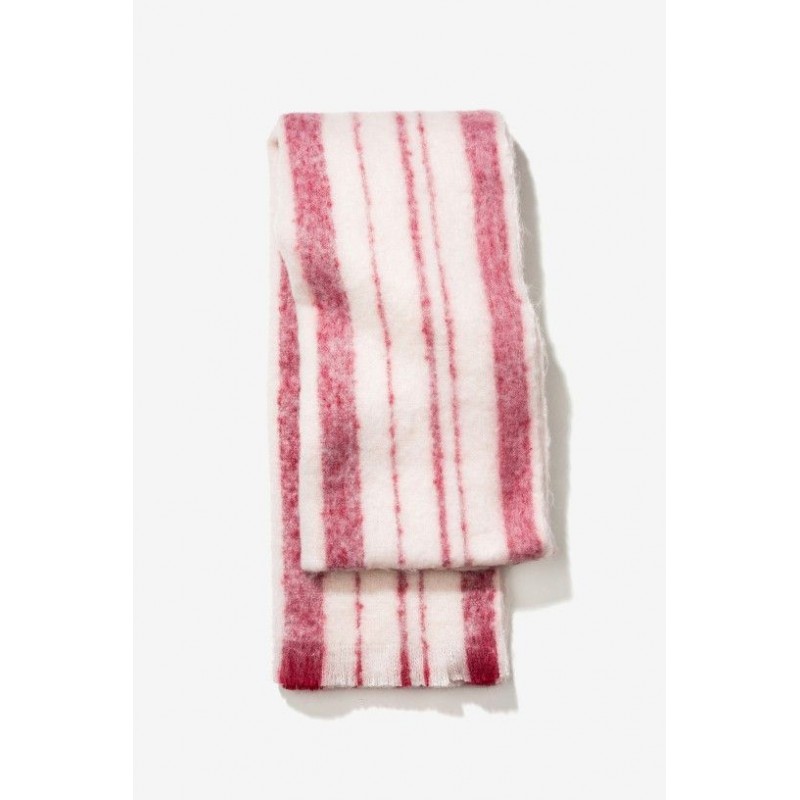Écharpe bicolore aux extrémités effilochées.