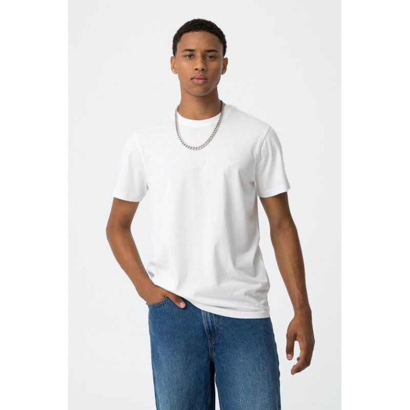 T-shirt en coton coupe classique avec détails en relief. Col ras du cou côtelé et manches courtes.