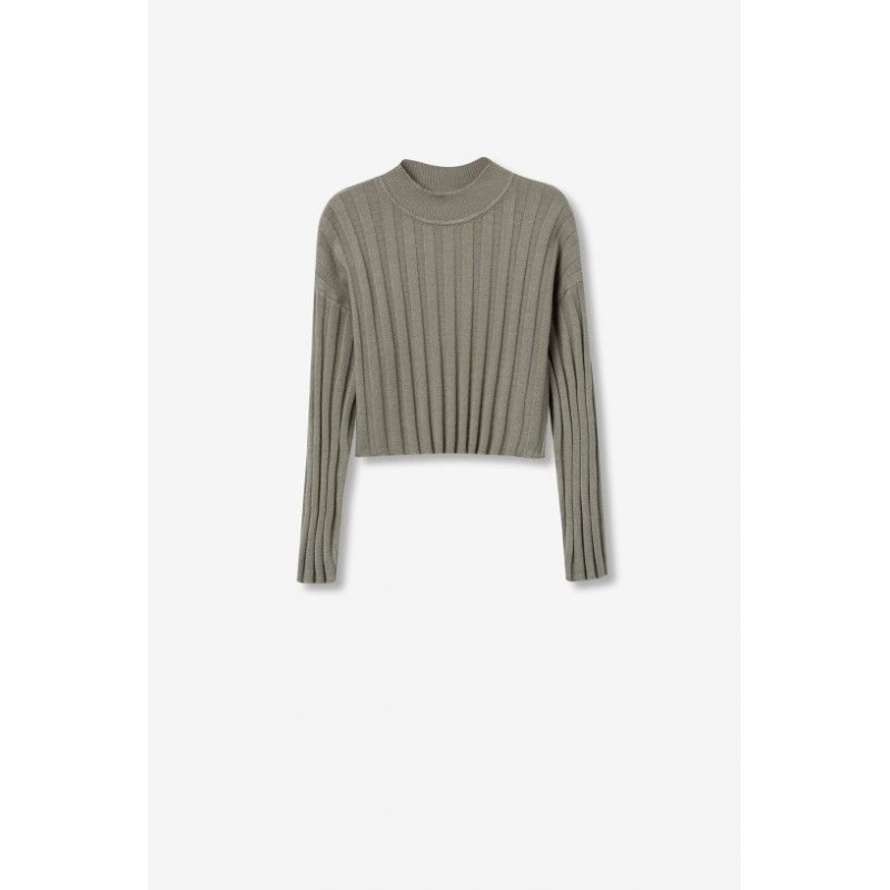 Pull oversize en maille côtelée avec col montant, manches longues et ourlet court.