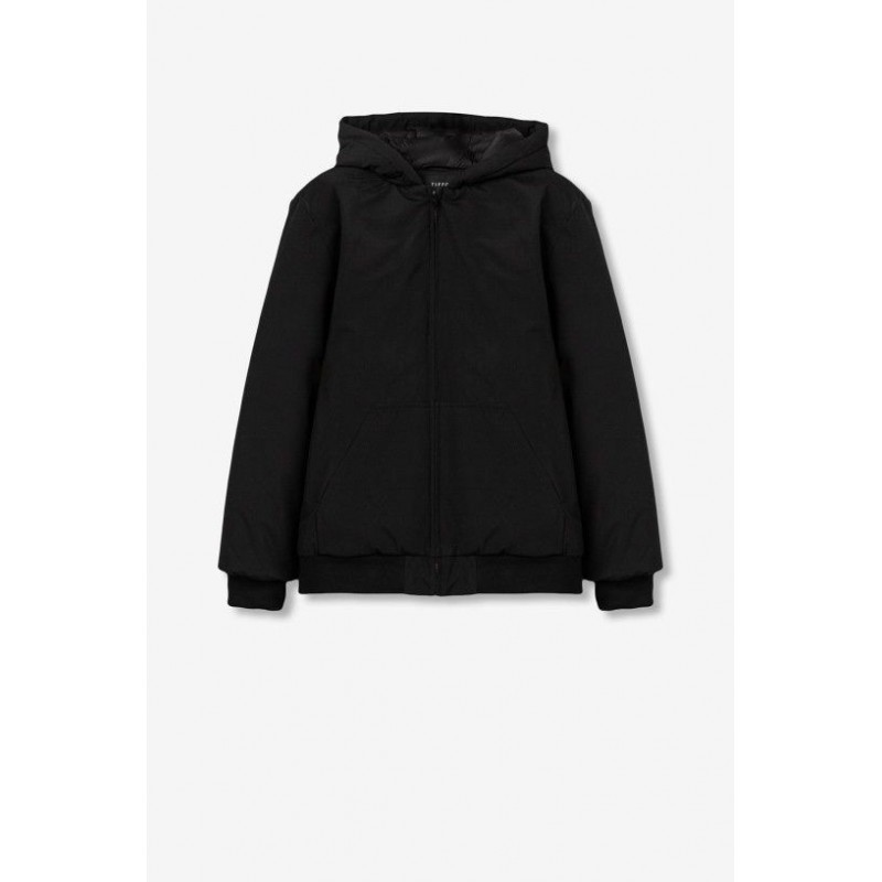 Veste à capuche coupe décontractée avec fermeture zippée sur le devant. Poches latérales et cordon de serrage à la taille. Modèle réversible : tissu lisse d'un côté, fausse fourrure de l'autre.
