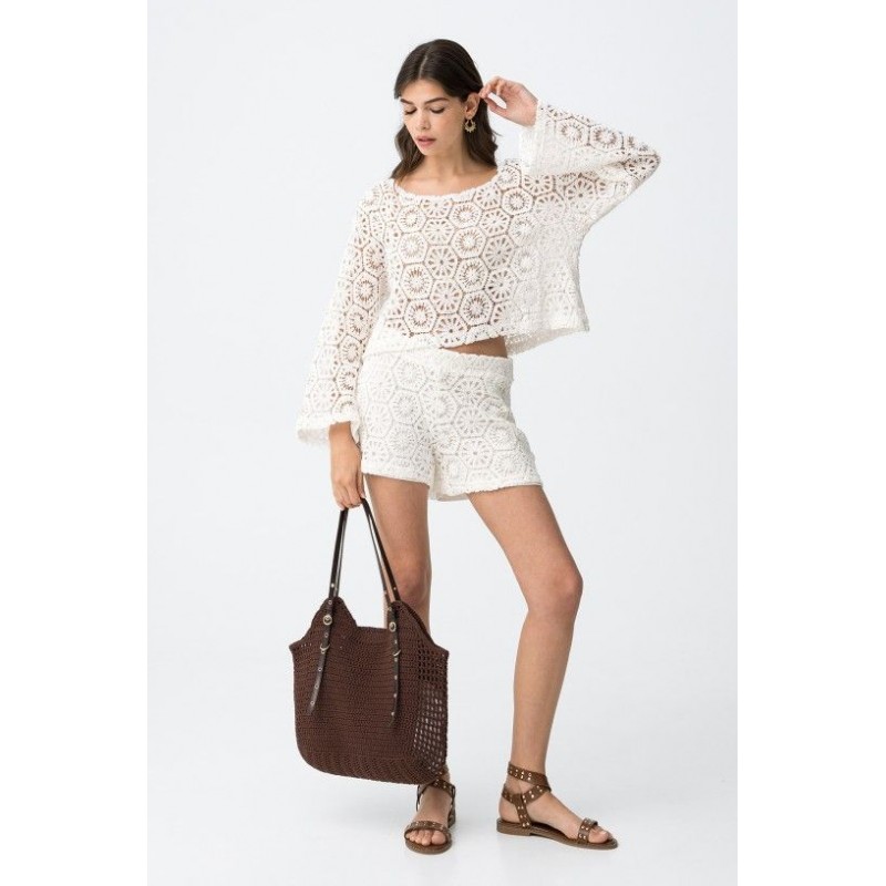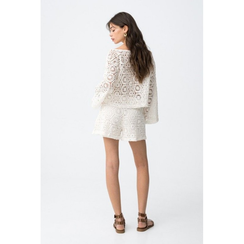 Short blanc à col.Composition : 77 % polyester, 19 % viscose, 4 % élasthanne.