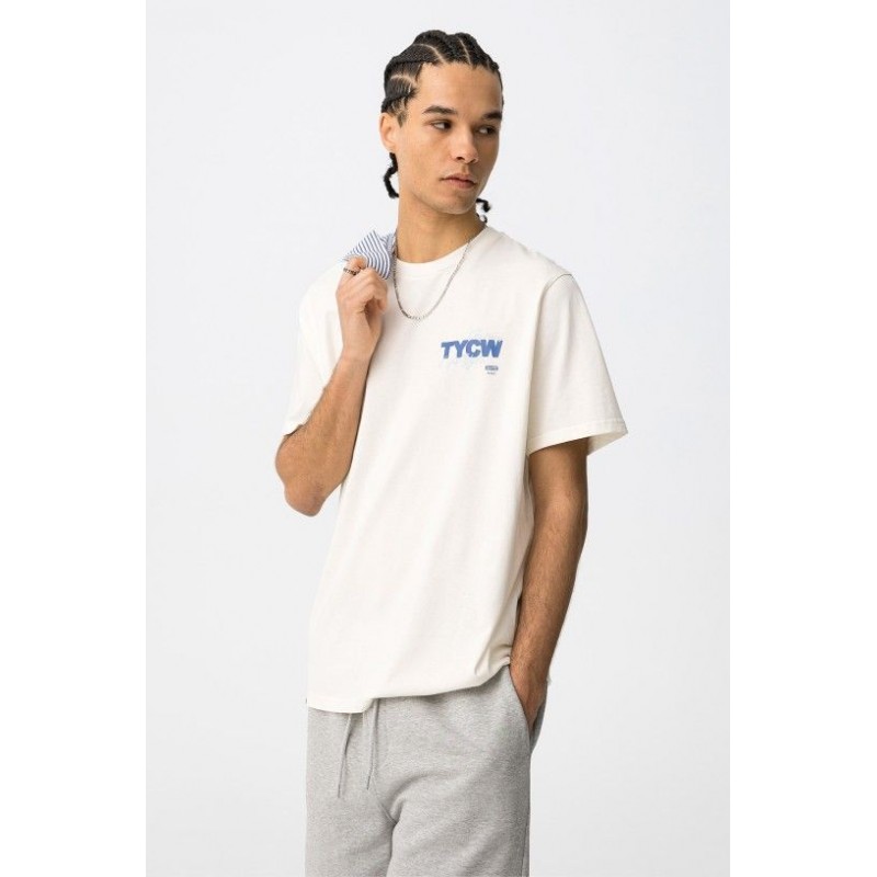 T-shirt blanc coupe classique, orné d'un imprimé blanc contrastant au dos et d'un petit logo sur le devant.