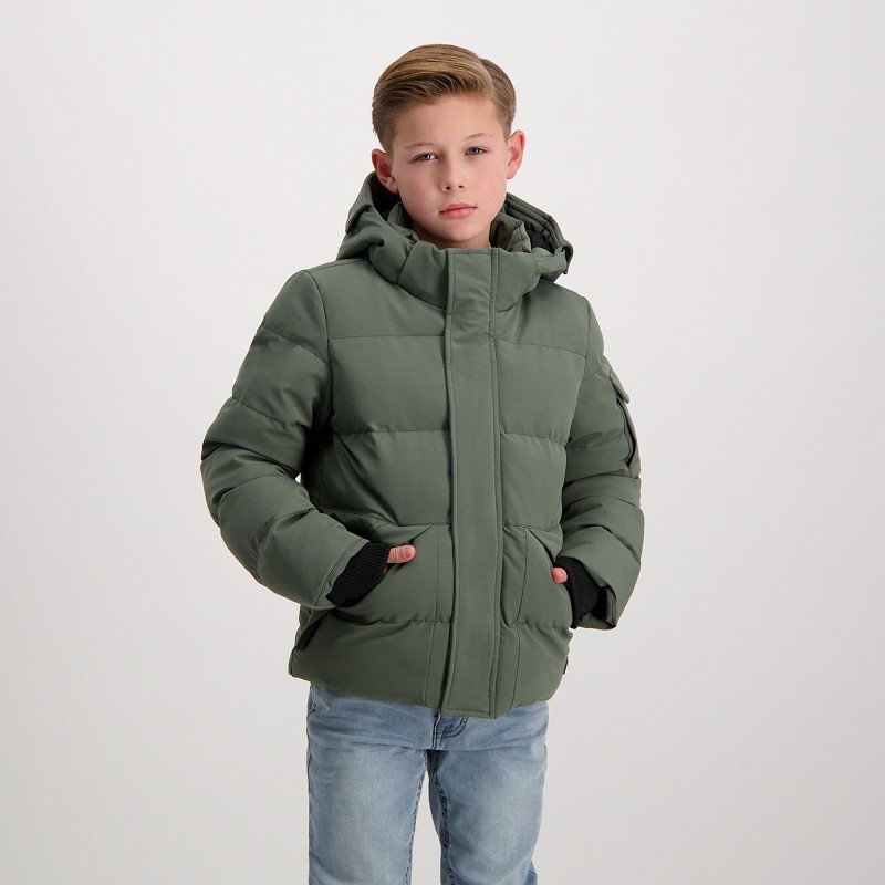 The Camden boys' jacket is a sturdy and functional winter jacket, ideal for the fall and winter seasons. This quilted jacket offers excellent insulation and features a sturdy flap zip for extra protection against the cold. The jacket has a fixed hood and multiple pockets, including slanted side pockets and a flap pocket on the sleeve, giving it a practical and robust look. Ribbed cuffs keep the wind out and ensure extra comfort on cold days. Perfect for adventures in any winter weather. Composition: 95% Polyester / 5% Elastane