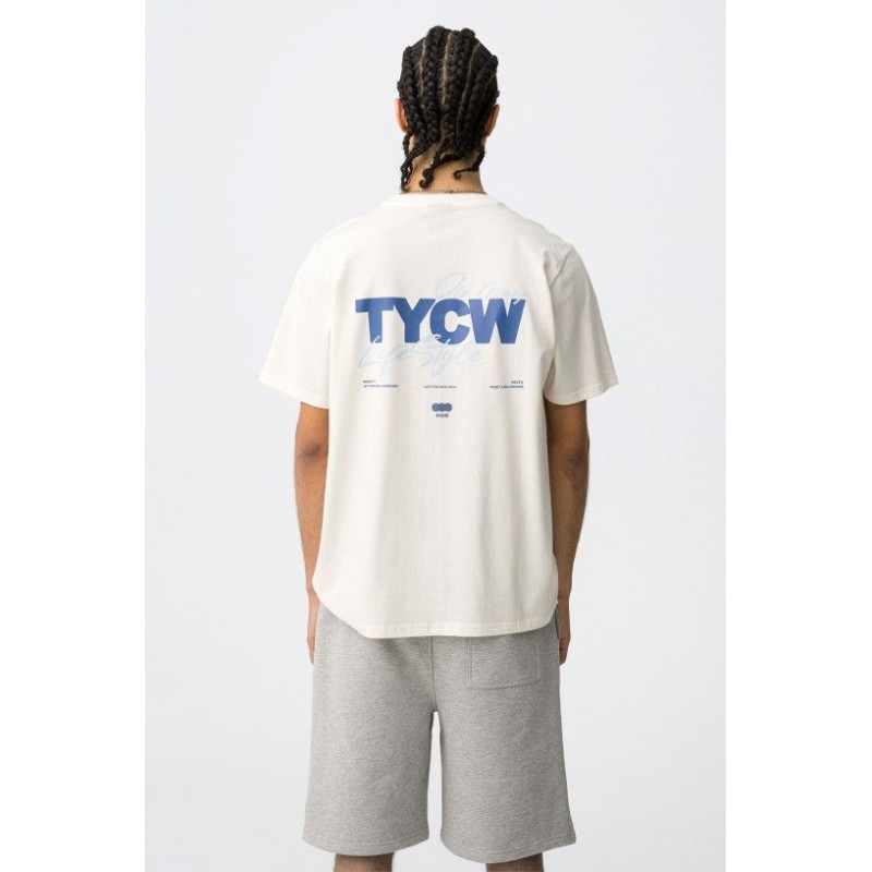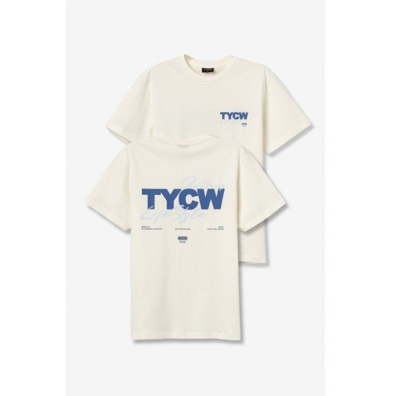 Regular fit, white T-shirt with a striking white print on the back and a small logo on the front.