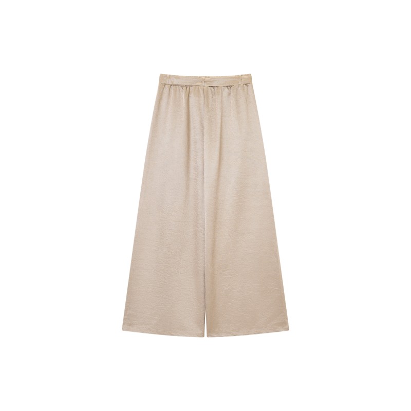 Broek met wijde pijpen en een tunnelkoord in de taille. Samenstelling : 50% VISC 50% POL