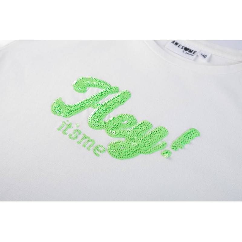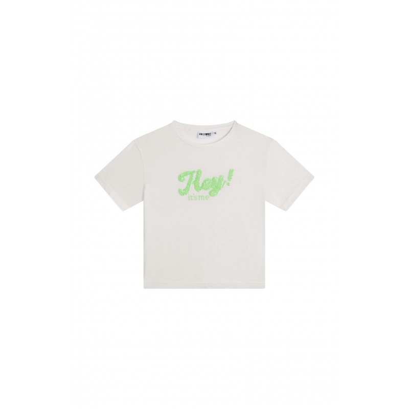 T-shirt korte mouwen "Hey it's me" in pailletten.