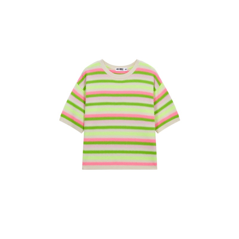 Ajour gebreide pull met korte mouwen en geschulpte zoom. Samenstelling : 50% VISC 50% POL