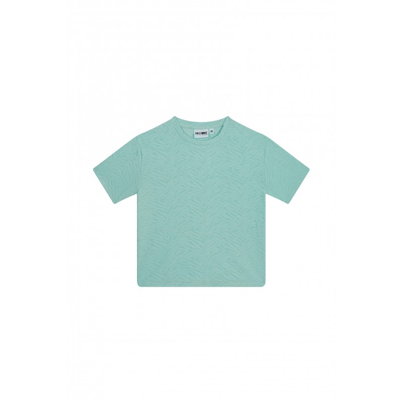 Mintkleurig t-shirt met metallic draad. Samenstelling : 50% VISC 50% POL