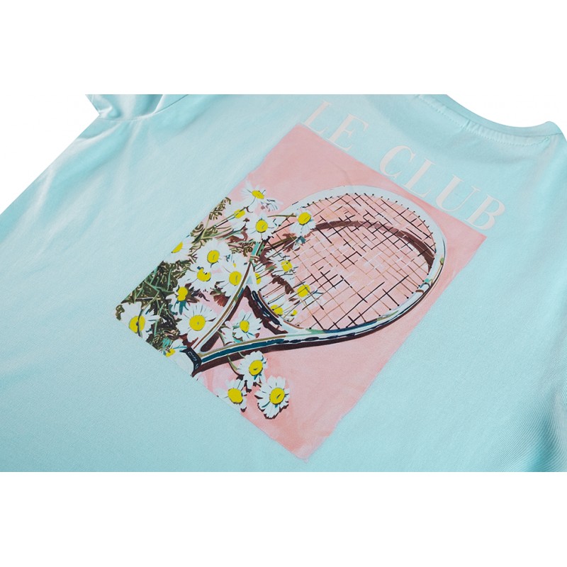 Mintkleurig t-shirt met metallic draad. Samenstelling : 50% VISC 50% POL