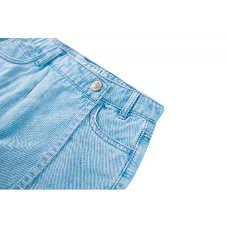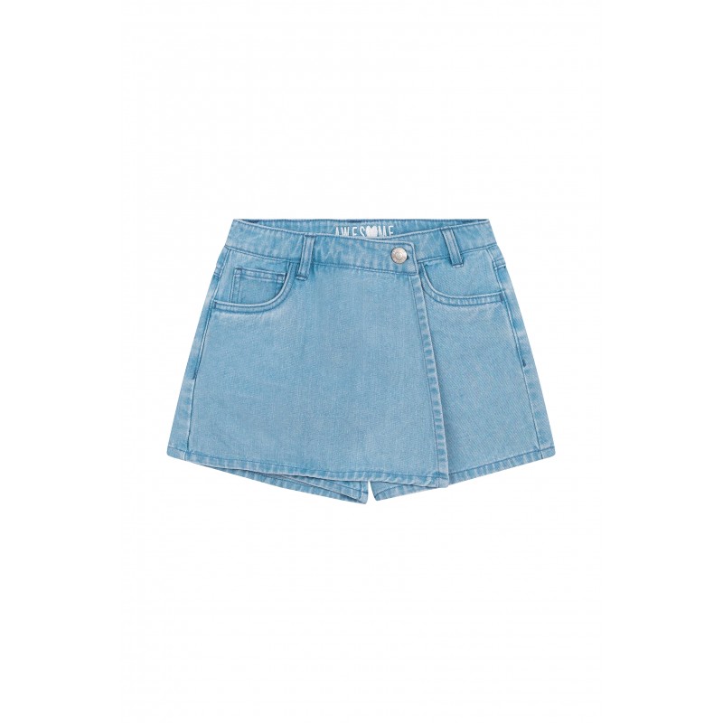 Licht denimblauwe short met rokflap aan de voorkant. Samenstelling : 50% VISC 50% POL