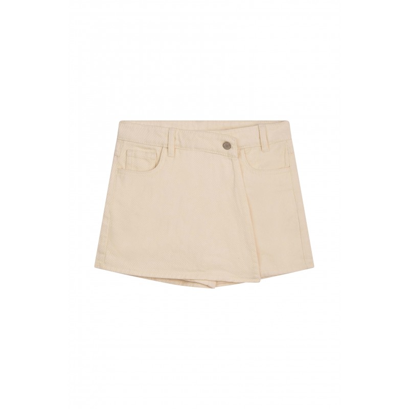 Licht denimblauwe short met rokflap aan de voorkant. Samenstelling : 50% VISC 50% POL