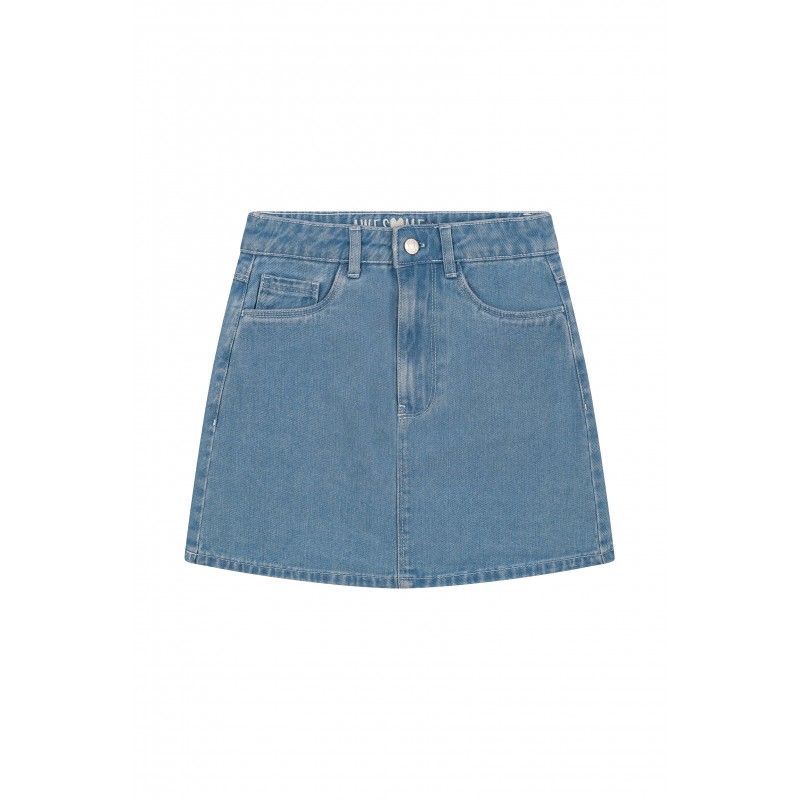 Licht denimblauwe short met rokflap aan de voorkant. Samenstelling : 50% VISC 50% POL