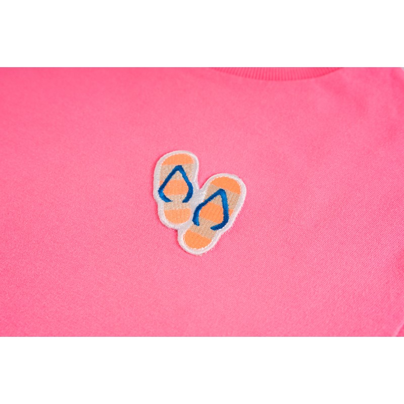 T-shirt km met kleine slippers erop