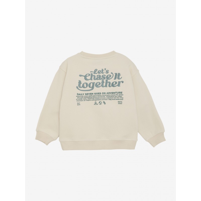 Sweatshirt van Daily7Kids. Het sweatshirt heeft een oversized pasvorm. Het is effen van kleur met een print op de voorkant. Daarnaast zijn de boorden geribbeld en heeft het een ronde halslijn. Gemaakt van gecertificeerd biologisch katoen. Gecertificeerd volgens GOTS - biologisch CERES-0366