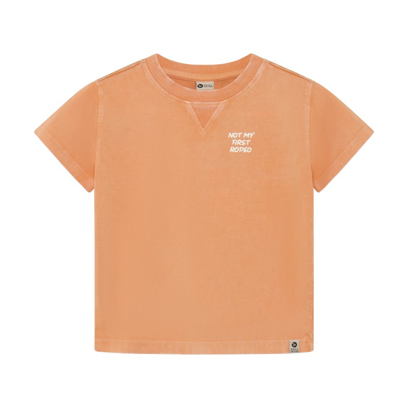 T-shirt van Daily7Kids. Het T-shirt is effen van kleur met een print op de achterkant. Gemaakt van gecertificeerd biologisch katoen. Gecertificeerd volgens GOTS - biologisch CERES-0366