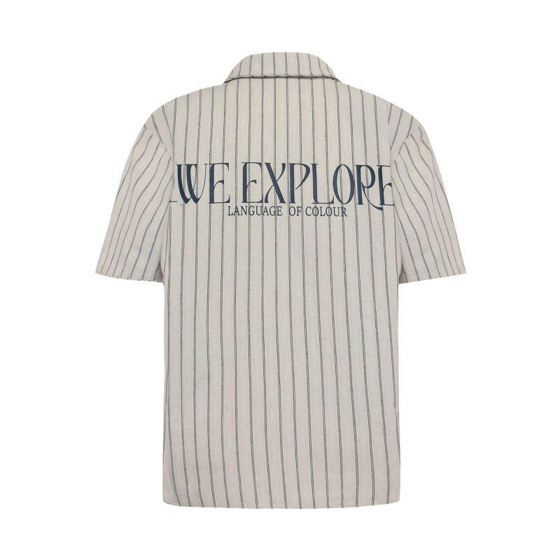 Jim gestreept overhemd met korte mouwen, kraag en knoopsluiting. Print op de achterkant. Normale pasvorm.