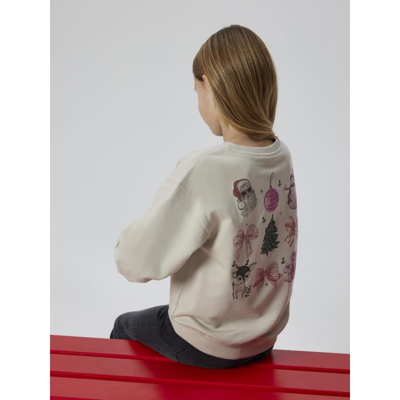 Geniet van Kerstmis in leuke en feestelijke items die overal waar je kind heen gaat zullen zorgen voor vreugde en plezier.Geborstelde stof is aan de binnenkant erg zacht, wat zorgt voor een comfort. - Producttype : Sweatshirt - Hals : O-hals - Mouw : Lange mouwen - Details : Geribde zoom - Print : Glitterprint voor een glinsterende en coole look, Pigment print voor een zachte print op lichtere stoffen - Pasvorm : Regular fit Samenstelling :80% Katoen, 20% Katoen - Gerecycled