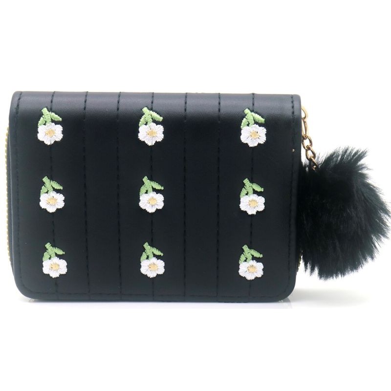 Wallet Embroidered Flowers 12x9cm - Black