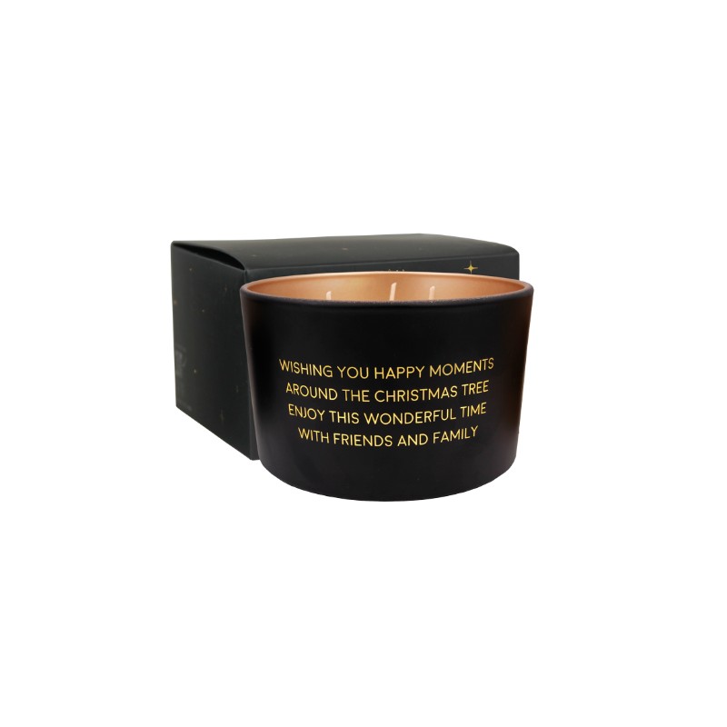 Op de geurkaars staat 'Wishing you happy moments around the Christmas tree, enjoy this wonderful time with friends and family'. Een super leuk cadeau voor de kerst.