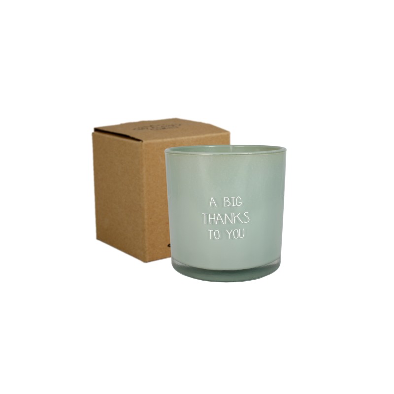 Een heerlijke geurkaars gemaakt van biologische sojawas. Deze kaars heeft de geur Minty Bamboo en brandt ca. 60 uur. Afmetingen: 10 X 10 cm.