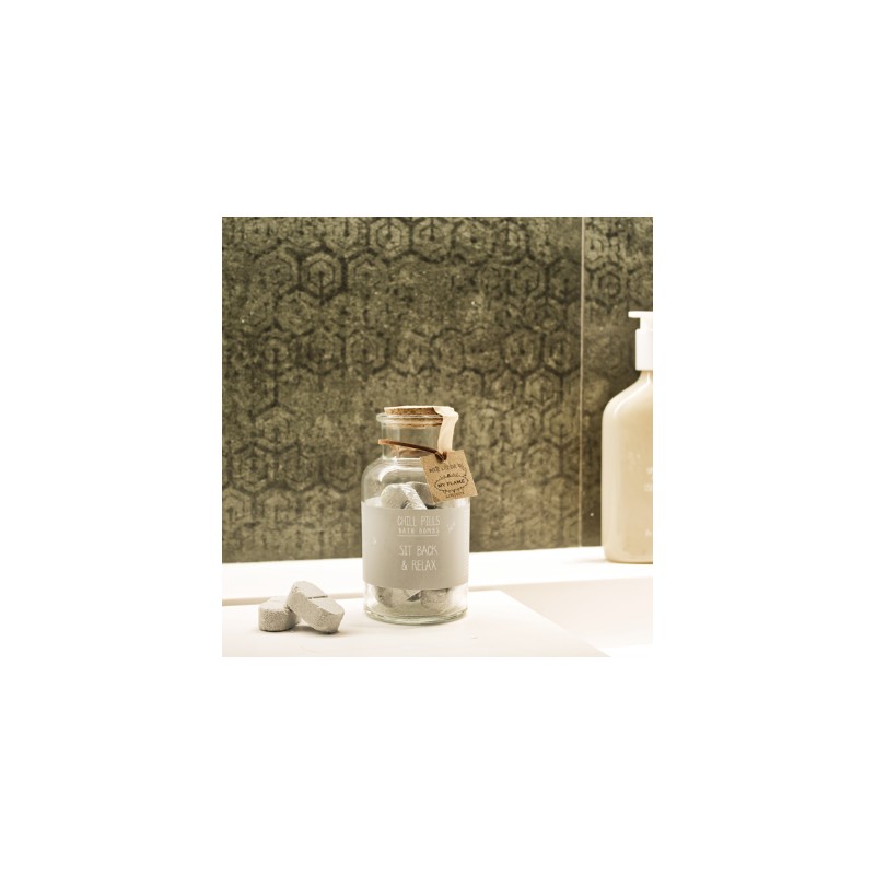 16 bruisballen, of eigenlijk chill pills in een glazen pot. Deze bruisballen lijken op een grote vitamine pil. Neem jouw welverdiende me-time en ontspan met deze heerlijke bruisballen. Laat 1, 2 of zelfs 3 pillen in het badwater vallen. De pillen zullen meteen gaan bruisen en oplossen in het water.