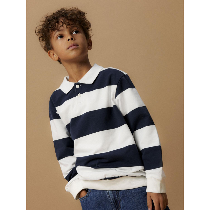 Voeg comfortabele en gave sweatshirts toe aan de garderobe van je kind en creëer een trendy en relaxte look.Ongeborstelde stof heeft een zacht oppervlak en lusjes aan de binnenkant voor een comfortabel gevoel. - Producttype : Sweatshirt - Hals : Polo - Mouw : Lange mouwen - Manchetten : Geribde mouwuiteinden - Sluiting : Knoopsluiting - Pasvorm : Regular fit Samenstelling :95% Biologisch katoen, 5% Elastaan